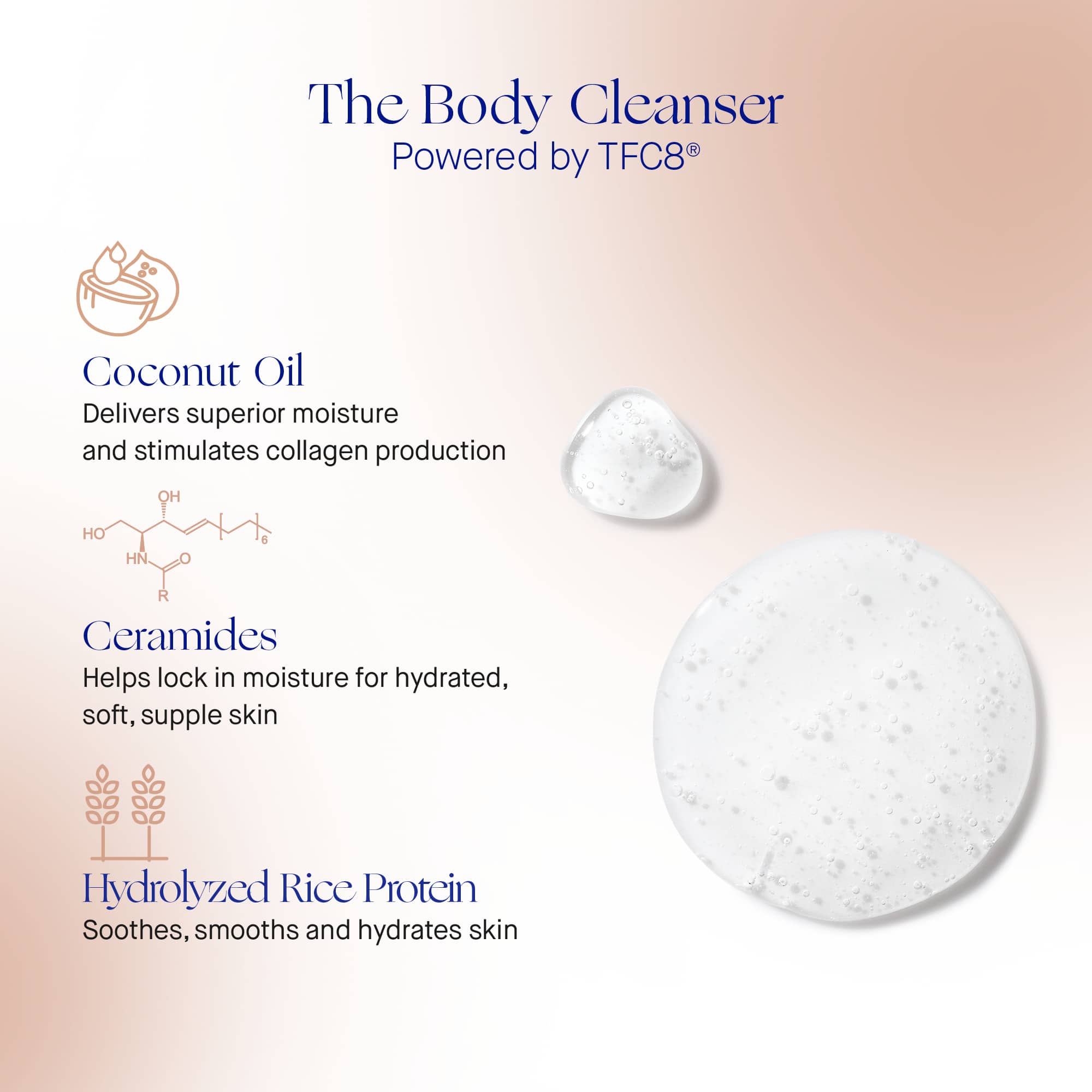 Aqua/Water/Eau, Potassium Cocoate, Sodium Hydroxypropylsulfonate Laurylglucoside Crosspolymer, Sodium Chloride, Cetyl Betaine, Glycerin, Fragrance/Parfum, Lauryl Betaine, Caprylyl/Capryl Glucoside, Polyglyceryl-3 Caprylate, Tetrasodium Glutamate Diacetate, Potassium Hydroxide, Potassium Olivate, Caprylic/Capric Triglyceride, Hydrolyzed Rice Protein, Maltodextrin, Niacinamide, Tocopheryl Acetate, Alanyl Glutamine, Arginine, Ceramide NP, Ceramide AP, Cocos Nucifera (Coconut) Oil, Glycine, Lysine, Olea Europaea (Olive) Fruit Oil, Pentylene Glycol, Phytosterols, Proline, Sodium Cetearyl Sulfate, Xanthan Gum, Behenic Acid, Brassica Alba Seed Extract, Hydrogenated Lecithin, Leontopodium Alpinum Flower/Leaf Extract, Oleic Acid, Oligopeptide-177, Oligopeptide-6, Palmitic Acid, Phenylalanine, Potassium Sorbate, Stearic Acid, Sunflower Seed Acid, Eugenol, Linalool.