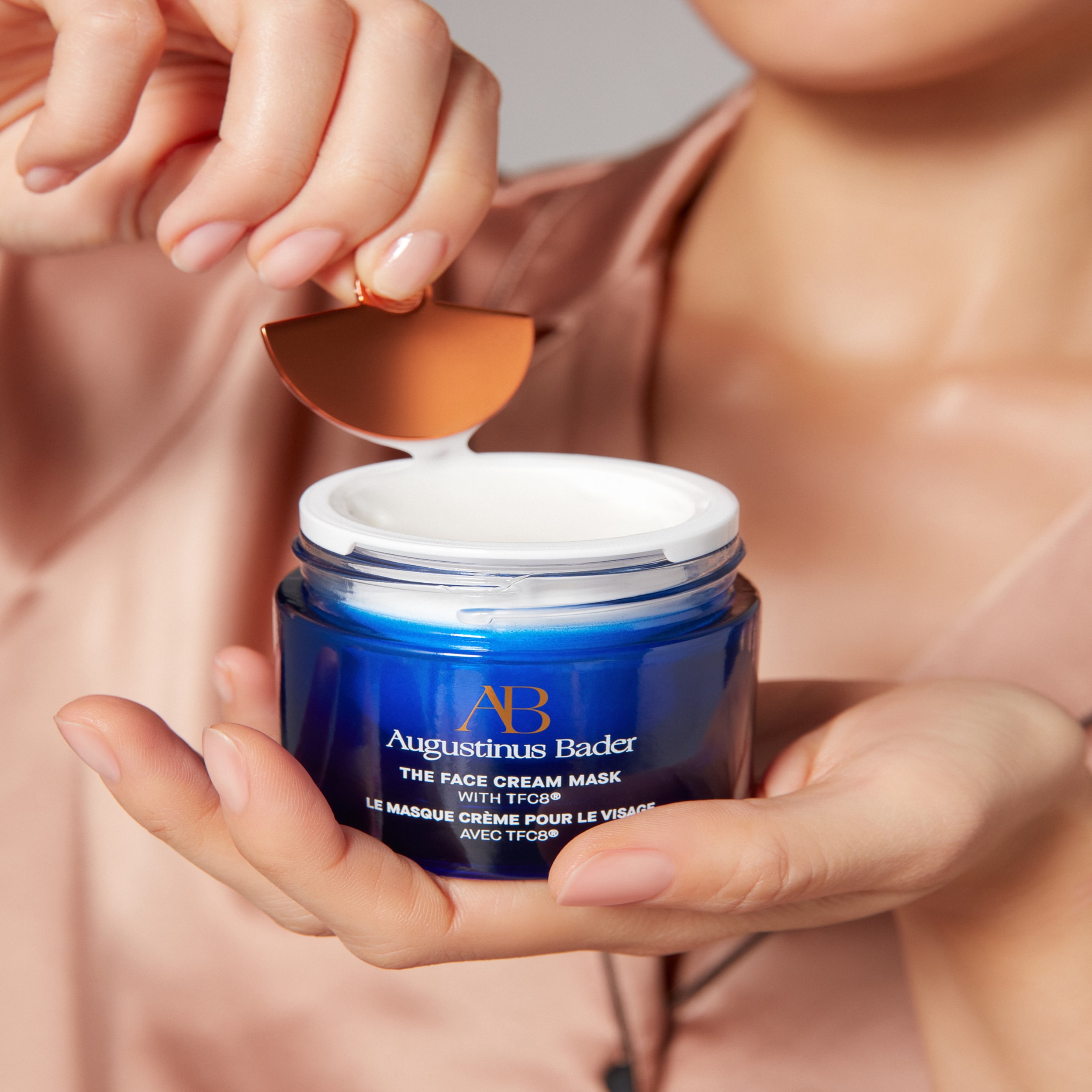 Paired with a hypoallergenic Zamac applicator that gently cools and depuffs the skin while applying the Face Cream Mask"