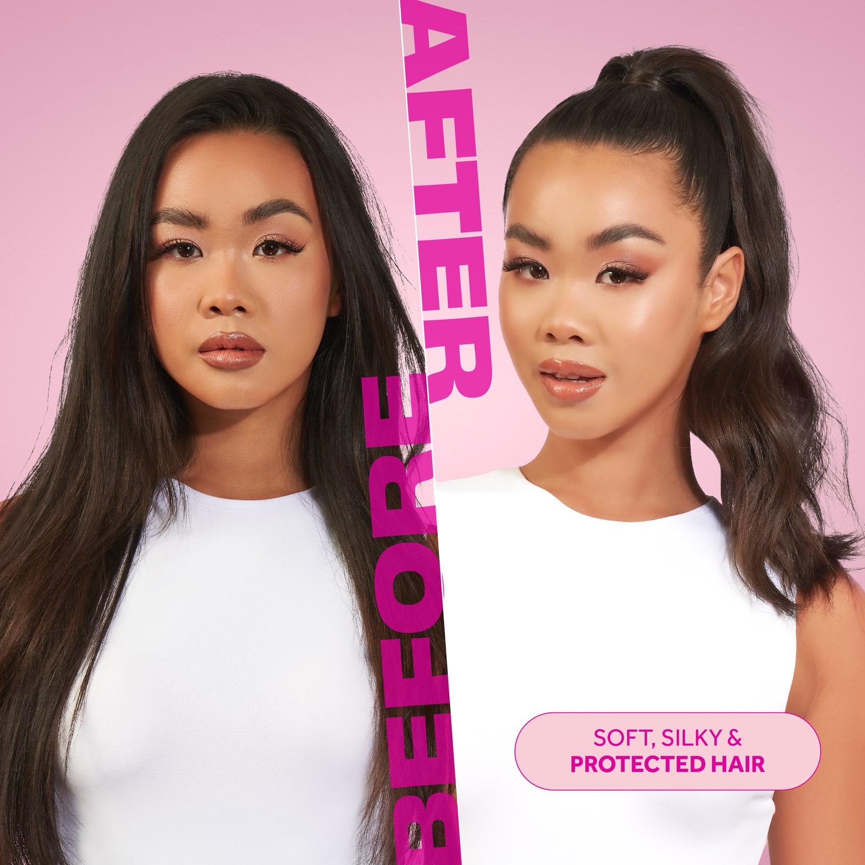 With antioxidant-rich Green Tea known to help protect hair from environmental factors, like damaging free radicals and UV rays, as well as everyday heat styling, while Pro-Vitamin B5 helps improve softness and shine. Our multi-tasking formula also has anti-static properties, keeping frizz and flyaway at bay, while enhancing shine, giving you a sleek and glossy finish every time you style.