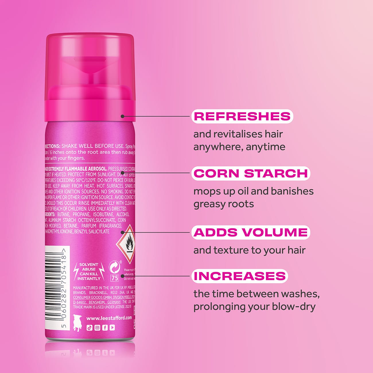 The Lee Stafford Dry Shampoo is made with Corn Starch to mop up oil and banish greasy roots. Simply spritz at the roots for an instant hair refresh.