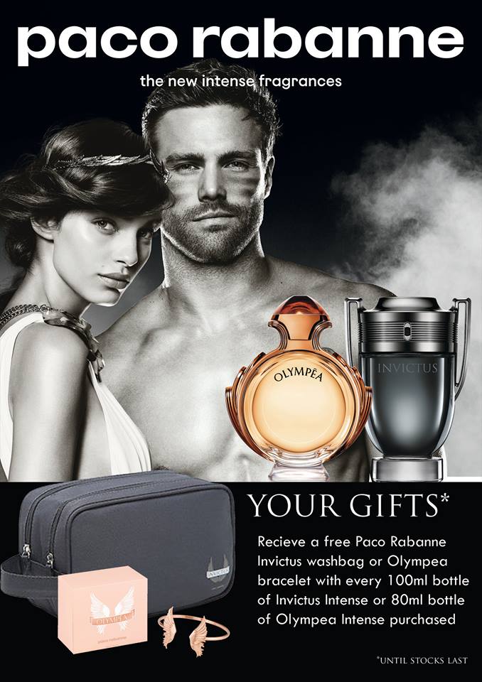 Paco Rabanne Olympéa Intense and Invictus Intense – The Heroic God and Goddess of fragrance return in a mythical storm of renewed intensity. Paco Rabanne’s Invictus and Olympea Intense deliver divine power, carnal sensuality and legendary triumph with every spray. Olympéa Intense dares the duality of a transparent floral freshness and the sensuality of a salty-vanilla accord, wrapped up in cashmere wood.